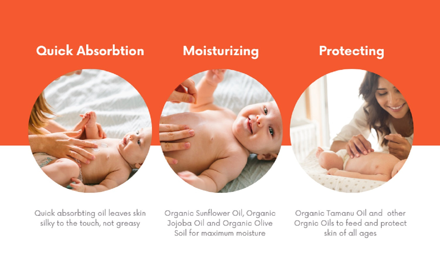 Our USDA 95% Certified Organic baby oil absorbs quickly, leaving skin silky and healthy, not greasy. Made with skin-soothing organic sunflower, olive, jojoba, and tamanu oils, it feeds and protects skin of all ages. Ideal for sensitive and dry skin and free from preservatives. Unlike most baby oils, ours is free of petroleum by-products.