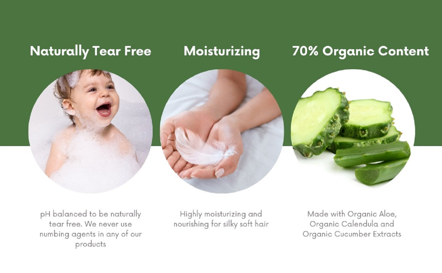 Made with moisturizing organic aloe, calendula, and chamomile, our formula is ideal for problem and sensitive skin. It leaves hair soft and luxurious, and is free of SLS and parabens.